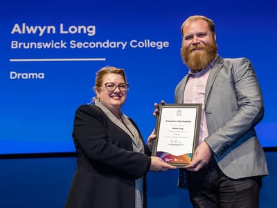 Just 298 of Victoria’s brightest students were recognised by this year’s Premier’s VCE Awards, which were formally awarded at a ceremony held at the Melbourne Convention & Exhibition Centre on July 20. Unfortunately, Ally Long was unable to attend the event as she has relocated to Queensland to pursue her tertiary education. Timothy Roach (Teacher – Drama) accepted the award in her stead.